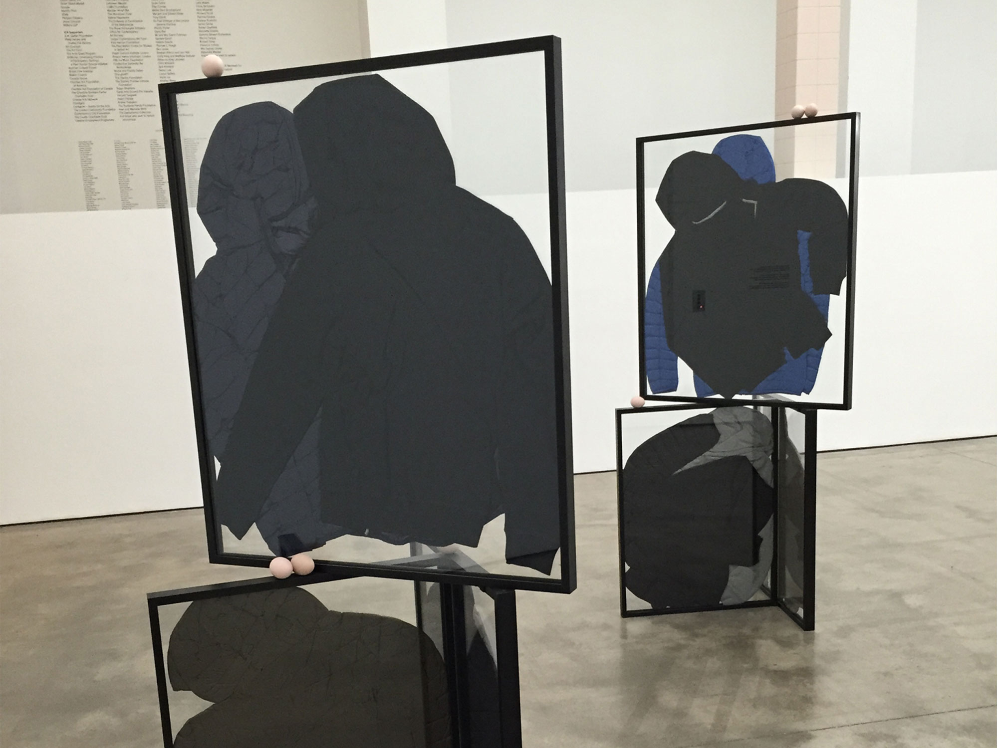 Walking around the gallery I came across a couple – maybe lovers – decked out in cheap sportswear and pressed together in an intimate embrace (Taken by Your Equivocal Stance I, II 2015, pictured below). But the precarious glass and delicately balanced ‘eggs’ (actually jesmonite and paint) suggests the fragility that comes with every human relationship. Maybe they’ll fall out tomorrow?